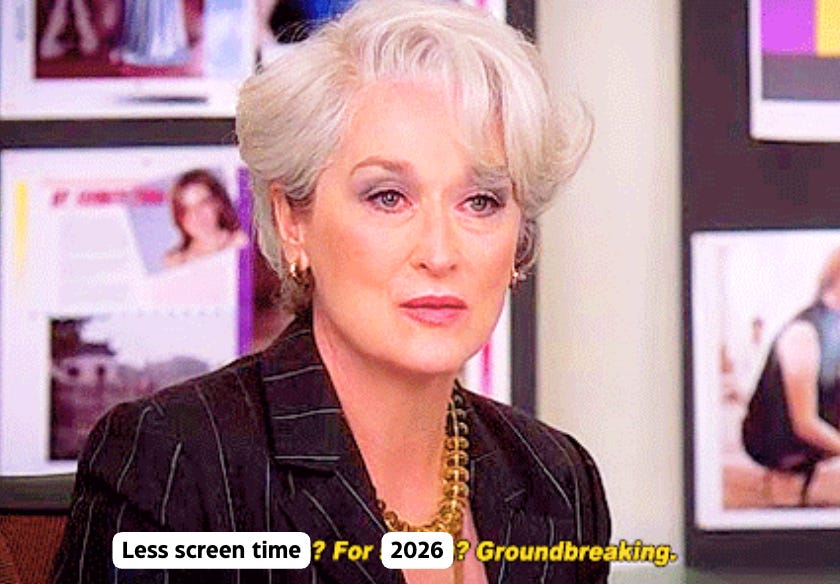 So instead of that, which I assume we’re all setting as a goal and then failing at because January sucks and sometimes you need a bit of mindless phone usage and Heated Rivalry content injected into your prefrontal cortex — here’s another intention.